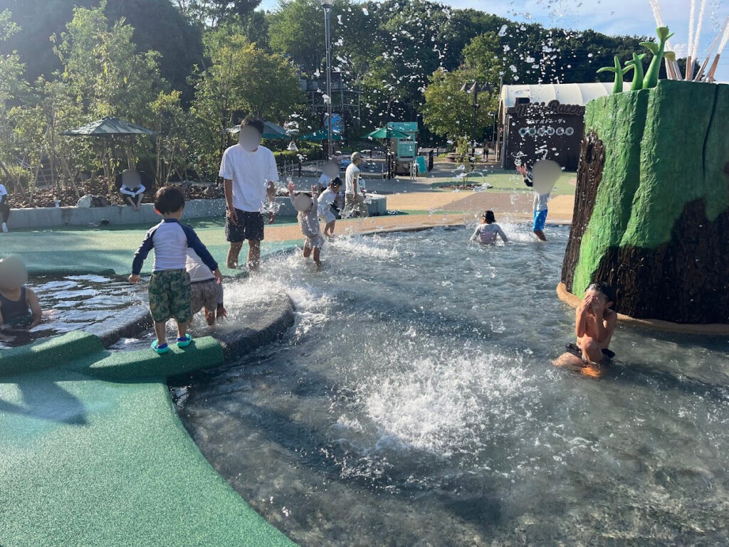 普段着のままでも遊べますが、思ったより水量が多くてびしょ濡れ必至!我が家の子どもたちは水着に着替えて思いっきり楽しみました。